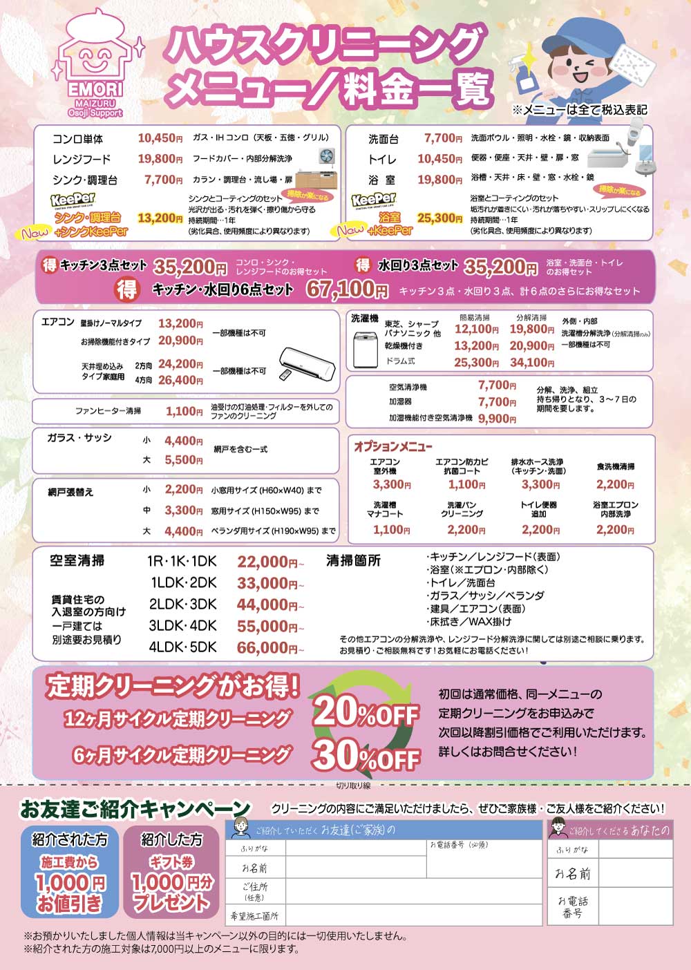 【舞鶴おそうじサポートEMORI】2月のハウスクリーニングキャン…