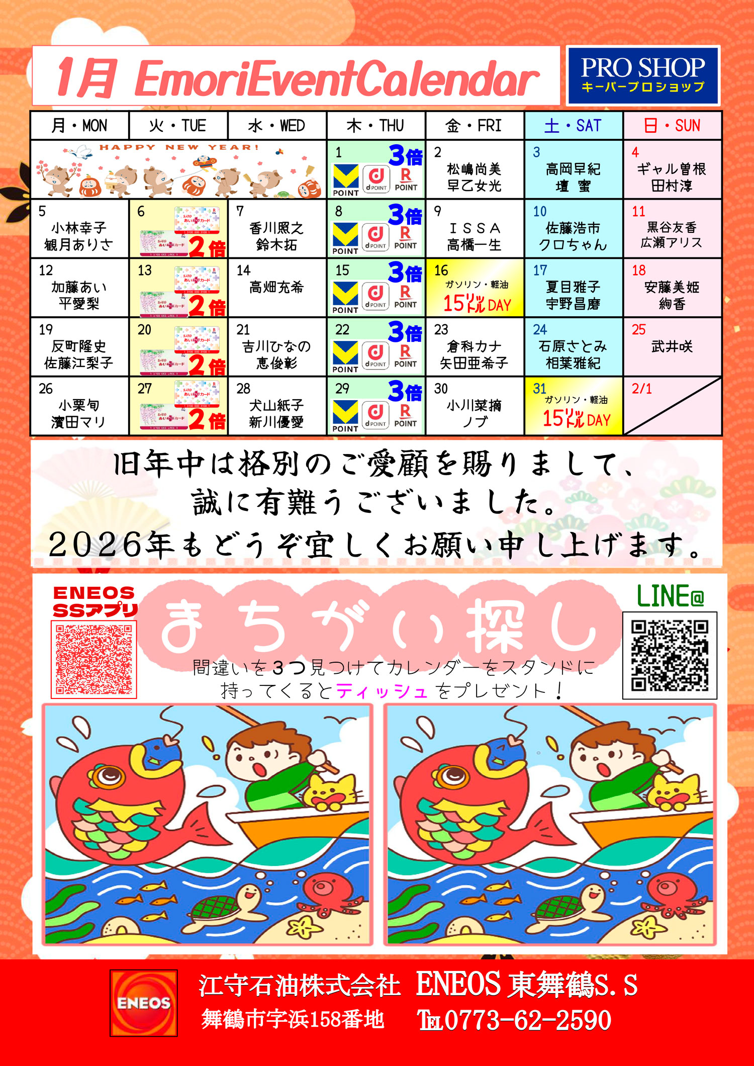 1月のカレンダーが出来上がりました!【ENEOS東舞鶴】