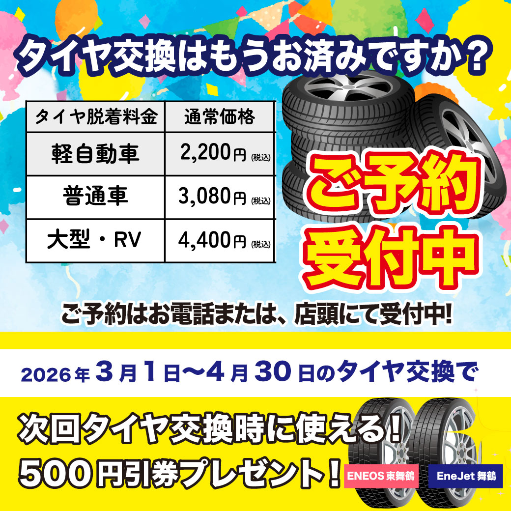 タイヤ交換で次回使える500円OFF券プレゼント!(LINEクーポン)